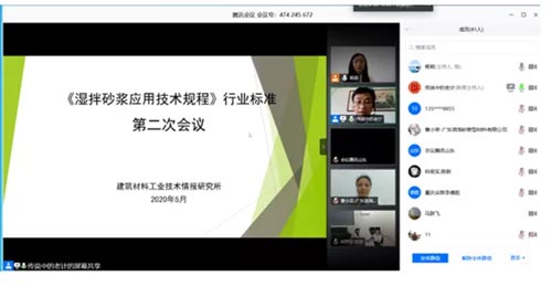 中國散協(xié)團(tuán)體標(biāo)準(zhǔn)《濕拌砂漿應(yīng)用技術(shù)規(guī)程》第二次標(biāo)準(zhǔn)編制工作會議于2020年5月22日上午9:30-11:30以網(wǎng)絡(luò)會議的形式召開。中國散裝水泥推廣發(fā)展協(xié)會秘書長、建筑材料工業(yè)技術(shù)情報研究所混凝土發(fā)展中心主任孫繼成博士、中國散裝水泥推廣發(fā)展協(xié)會專家委員計海霞高工、建筑材料工業(yè)技術(shù)情報研究所標(biāo)準(zhǔn)編制工作組楊莉、中建西部建設(shè)北方有限公司技術(shù)中心經(jīng)理張凱峰、成都精準(zhǔn)混凝土有限公司經(jīng)理馬占民、山東弗爾曼新材料集團(tuán)有限公司經(jīng)理肖維錄、主任薛俊書、廣東浪淘砂新型材料有限公司研發(fā)中心主任曹小榮、黃山精強建材股份有限公司副總經(jīng)理程楷、四川同舟化工有限公司技術(shù)片區(qū)負(fù)責(zé)人鄧奎、中信國安建工集團(tuán)有限公司總工張學(xué)華、麗水市處州混凝土有限公司總經(jīng)理楊磊、實驗室主任金滿昌;株洲市中建新材料有限公司總經(jīng)理陳新、青島國基商砼有限公司郇建、昆明匯森混凝土有限公司杜顯茂等41名代表參加了會議。會議由建筑材料工業(yè)技術(shù)情報研究所楊莉主持。首先主編單位中國散裝水泥推廣發(fā)展協(xié)會秘書長、建筑材料工業(yè)技術(shù)情報研究所孫繼成博士介紹了標(biāo)準(zhǔn)編制要求以及編制工作進(jìn)度計劃。隨后,中國散裝水泥推廣發(fā)展協(xié)會專家委員、主編單位標(biāo)準(zhǔn)編制負(fù)責(zé)人計海霞高工就濕拌砂漿行業(yè)現(xiàn)狀、標(biāo)準(zhǔn)中創(chuàng)新點和關(guān)鍵點進(jìn)行介紹。標(biāo)準(zhǔn)編制組建筑材料工業(yè)技術(shù)情報研究所楊莉詳細(xì)介紹了標(biāo)準(zhǔn)文本及條款編制說明,并組織參會代就凝結(jié)時間、保塑時間、14拉伸粘結(jié)強度等關(guān)鍵技術(shù)參數(shù)進(jìn)行交流討論,廣泛征集參編單位意見。該會議的召開對標(biāo)準(zhǔn)編制工作起到了大的推進(jìn)作用。標(biāo)準(zhǔn)編制負(fù)責(zé)人計海霞高工標(biāo)準(zhǔn)編制組工程師楊莉